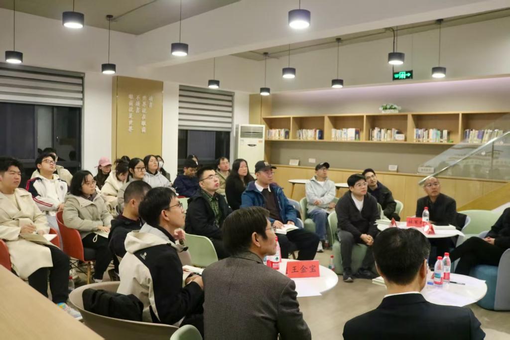 11月20日晚,由台州学院工会委员会主办、人文学院分工会承办的“心湖夜读”第21期读书会在临海校区广文书院二楼启幕。校党委委员、副校长李建军,校工会常务副主席王金宝,人文学院党委书记陈灵强、党委副书记林军辉,历史系主任张呈忠、副主任施德顺及各二级工会教师代表齐聚现场,与学子们共赴一场穿越千年的历史对话,探寻王安石变法背后理想与现实的交织碰撞。读书会由人文学院党委书记陈灵强主持。