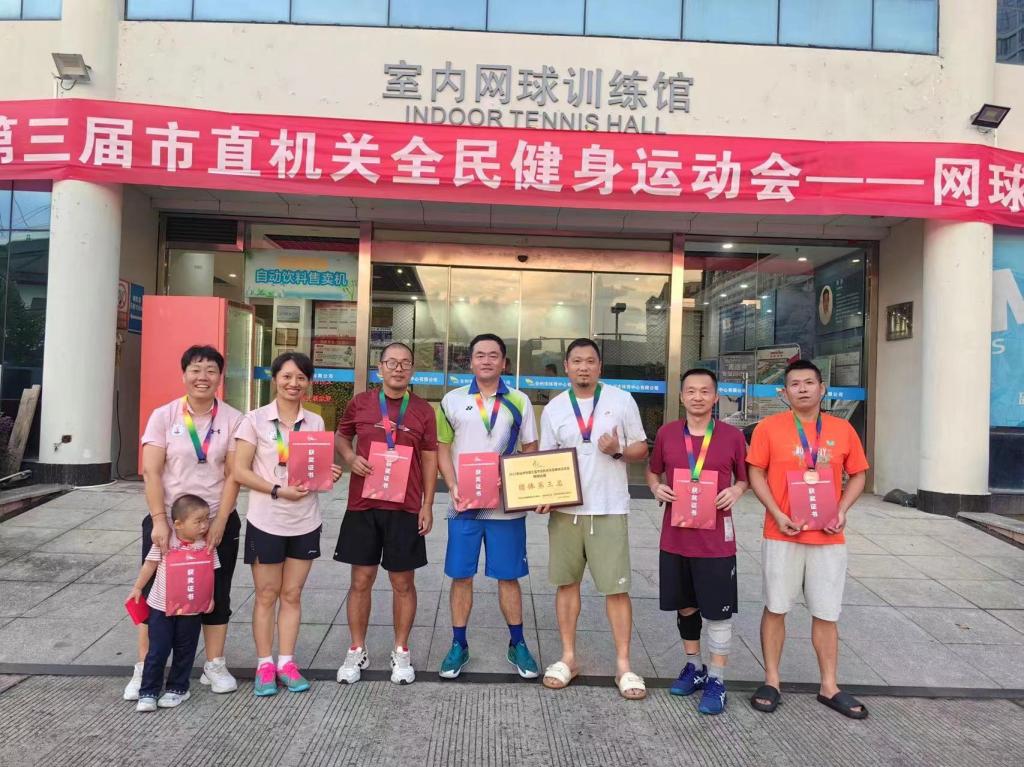 7月1日-2日,台州市第三届市直机关全民健身运动会网球比赛在台州市体育中心举行,13支队伍同台竞技。我校教工网球代表队一路过关斩将,取得团体季军的好成绩。