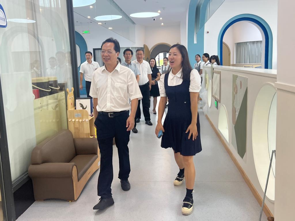 在附属幼儿园(心湖幼儿园),潘通天一行察看了园区环境,对今年暑期新浇注的幼儿塑胶活动场地无论材质、施工质量、视觉效果等都表示满意。潘通天等还深入托班、小班活动室,看望教师,与幼儿互动。在随后召开的座谈会上,潘通天指出,心湖幼儿园的创办,是台州学院与椒江区教育合作的一个成功范例,是台州学院一项重要的民生工程,极大缓解了学校引进人才和教职工子女入公办幼儿园难的问题。他要求相关部门,继续帮助办好幼儿园,在设备保障、经费补助、人事安排、师资队伍建设等方面要作为份内事全力予以支持,使之成为区内、市内有显著特色、有高校优势、能引领学前教育发展方向的品牌幼儿园。潘通天还要求相关部门,要着手研究幼儿园的空间拓展问题、学校新校区幼儿园的设置规划问题,从长计议,以满足附属单位职工子女、新校区建成后引进人才子女的入托入园问题。
