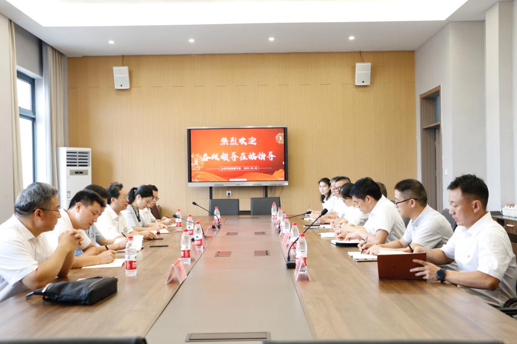 在附属学校,潘通天一行先是陪同市委常委、组织部长、统战部长朱巧湘,椒江区委书记林强对教职工代表进行慰问。随后,潘通天等与附属学校班子成员进行座谈。林久杏校长具体汇报了学校2023届毕业生的中考成绩、2023年秋季招生情况、开学初学校的运行情况以及学校存在的薄弱点、面临的困难。陈于清书记汇报了学校抓党建、促校风、强师德、提质量几方面的具体实践。潘通天对附属学校今年中考取得的可喜成绩给予充分肯定。同时要求附属学校党政班子进一步明确学校的目标定位,科学谋划学校的发展路径;要把师资队伍建设放在重中之重的位置,引进和培育并举,毫不松懈,强力推进,努力提升师资队伍的整体水平和质量;要练好内功,树立精品意识,坚持务实作风,克服浮躁心理,积极打造品牌,争取区委、区政府的更大支持。