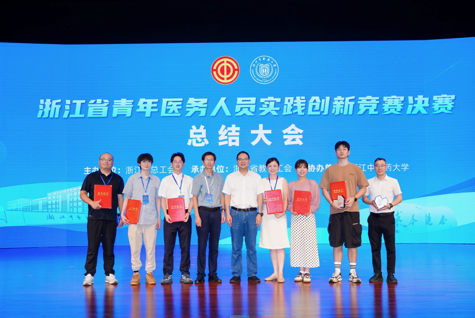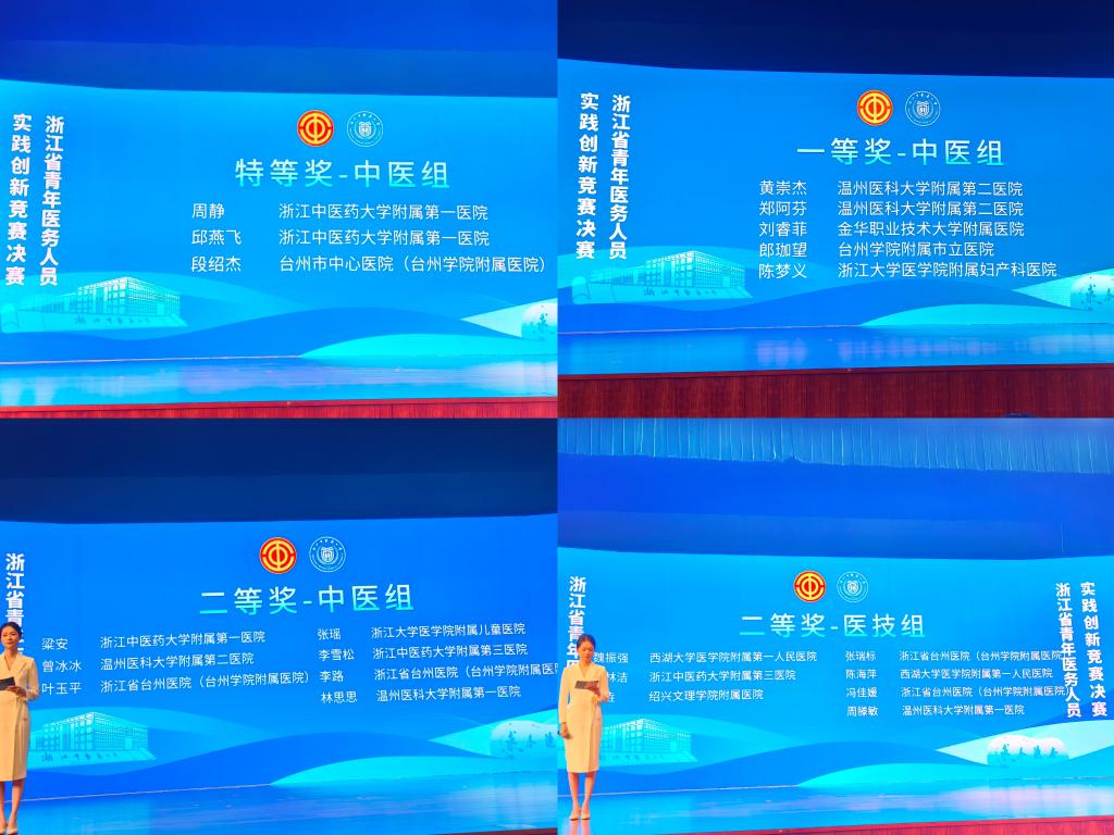 9月26日至27日,浙江省青年医务人员实践创新竞赛决赛在浙江中医药大学举行。在校工会常务副主席王金宝的领队下,参赛选手通过项目路演和现场答辩,沉稳自信地展示了项目的科学性、创新性和实用价值。经过激烈角逐,台州市中心医院段绍杰荣获中医组特等奖;台州市立医院郎珈望荣获中医组一等奖;台州医院叶玉平、李路荣获中医组二等奖;台州医院张瑞标、冯佳缓荣获医技组二等奖。