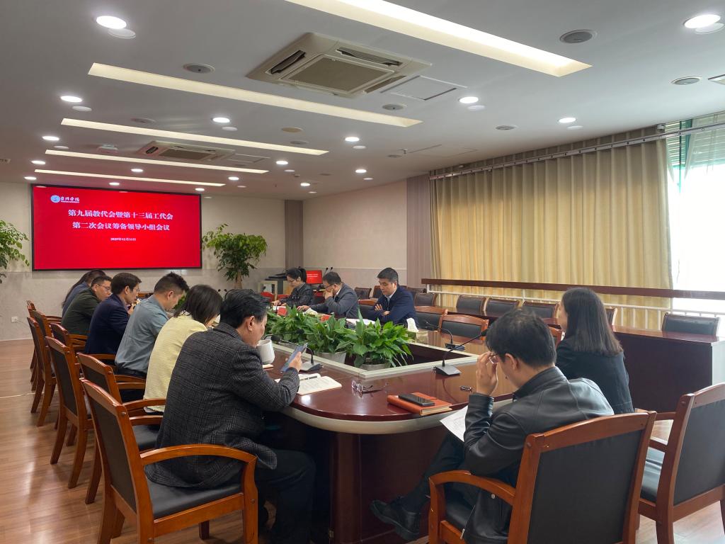为保障第九届教代会暨第十三届工代会第二次会议(以下简称“双代会”)顺利召开,12月11日上午,学校在椒江校区行政楼第一会议室召开筹备领导小组会议,就各项准备工作进行再细化、再部署。校党委副书记、工会主席丁一志,党委委员、宣传部(教师工作部)部长蔡海江,党委委员、人事处处长郑丽君出席会议,学校办公室,组织部,发展规划处,计财处,后勤服务管理处,工会、妇联,艺术与设计学院等相关负责人参会,会议由校工会常务副主席王金宝主持。