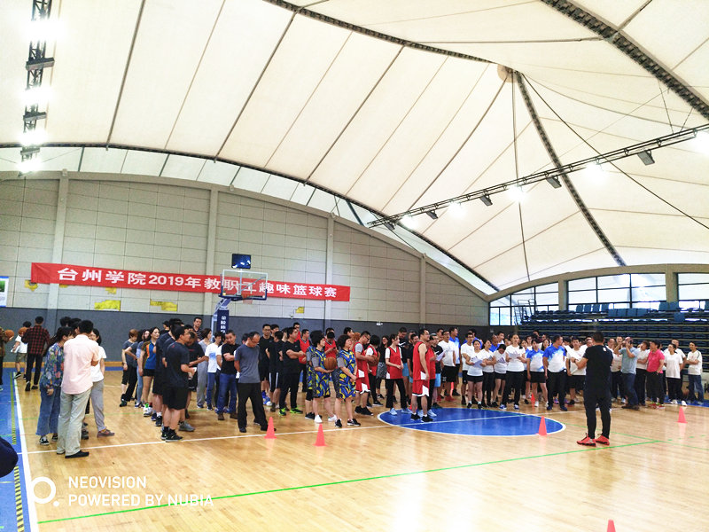 6月13日下午,由校工会主办的台州学院2019年教职工趣味篮球赛在椒江校区风雨操场4、5馆举行,共有来自各二级分工会的14支代表队参加。